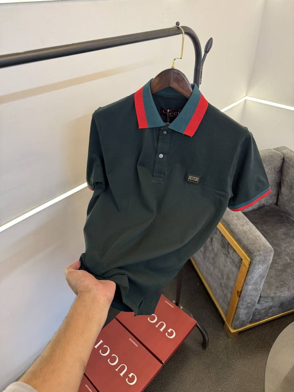 ? *Gucci imported box pack polo tshirt with brand button and steel logo on chest now in stock*?