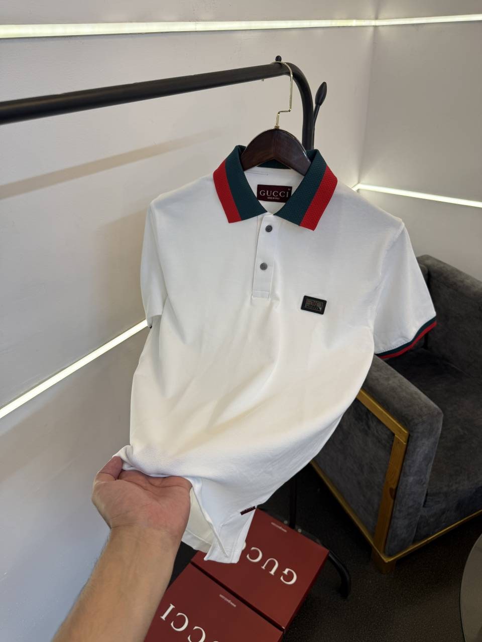 ? *Gucci imported box pack polo tshirt with brand button and steel logo on chest now in stock*?